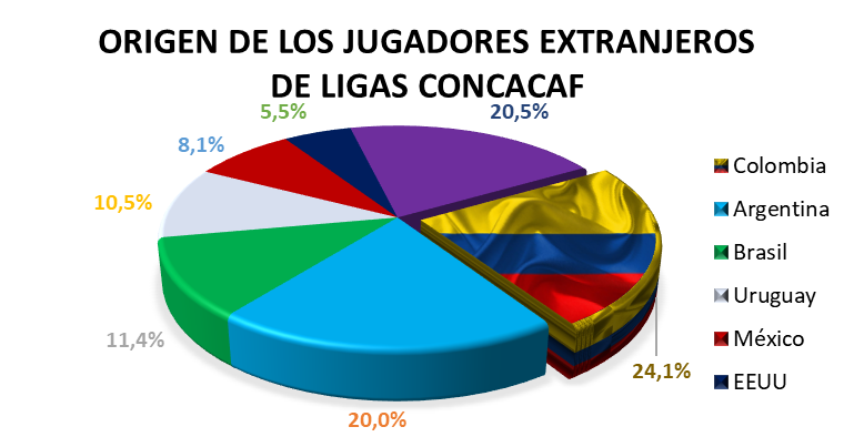 Hacia las ligas de CONMEBOL, somos el tercer mayor exportador después de Argentina y Uruguay, con 154 jugadores. Pero el papel de Colombia resulta aún más significativo en Norte y Centroamérica, donde Colombia lidera el mercado con -coincidentemente- 154 jugadores, superando a Argentina y siendo reconocido como la principal fuente de talento externo para esas ligas. Esta fuerte presencia explica el creciente peso de Colombia tanto en las transferencias, como en los servicios asociados al deporte profesional y en la economía del entretenimiento vinculada al fútbol.