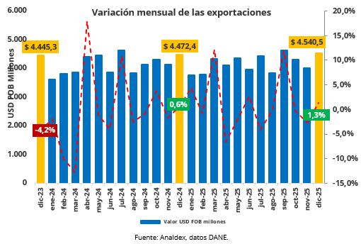 Informe Mensual de Exportaciones Colombianas diciembre de 2025